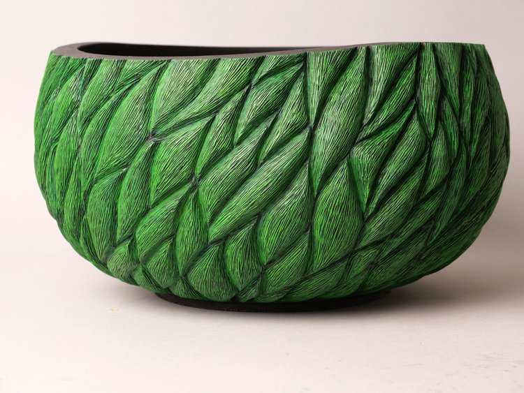 Elizabeth is a woodturning and spoon carving instructor who lives in Seattle, WA. She began woodworking in 2015, and some of her first creations included several pieces of furniture in the Arts & Crafts style. She eventually turned to smaller objects and now specializes in bowls, spoons, and boxes. Her skills range from natural finish and simple forms to highly carved and painted forms that emulate natural motifs. Elizabeth serves as club president for her local woodturning club, the Seattle Woodturners, and she helps run the local spoon club chapter, the Seattle Spoon Club. She was awarded the American Association of Woodturner’s 2023 Professional Outreach Program’s Artist Showcase as an emerging artist.